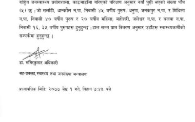 काठमाडौँ, १ जेठ । पछिल्लो पटक गरिएको कोरोना परिक्षणमा थप २४ जनामा कोराना पोजिटिभ भेटिएको