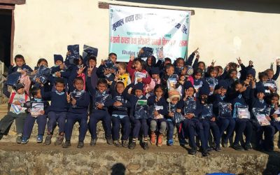 दमौली, ११ पुस : न्यानो कपडा र शैक्षिक सामग्री पाएपछि हर्षित मुद्रामा तनहुँको शुक्लागण्डकी नगरपालिका–३