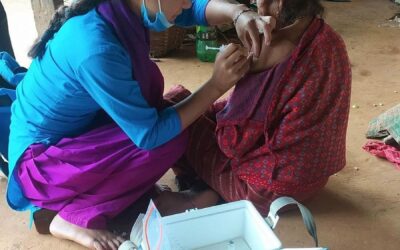 सिन्धुपाल्चोक, १५ असोजः सिन्धुपाल्चोकको मेलम्ची नगरपालिका –७ दुवाचौरका वृद्धालाई घरमै कोरोनाविरुद्धको खोप लगाउँदै स्वास्थ्यकर्मी ।