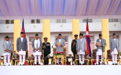 काठमाडौँ, ३१ असार । राष्ट्रपति रामचन्द्र पौडेलले नवनियुक्त १९ मन्त्रीलाई पद तथा गोपनीयताको शपथ गराएका