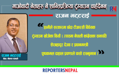 काठमाडौं, २६ चैत । नेकपा एमाले विदेश विभाग प्रमुख राजन भट्टराईले सत्य निरुपण तथा मेलमिलाप
