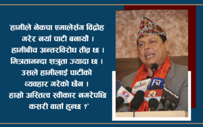 काठमाडौं, ३ साउन । नेकपा एमालेका नेता एवं पूर्वमन्त्री महेश बस्नेतले राष्ट्रिय, अन्तर्राष्ट्रिय शक्तिकेन्द्रको इसारामा