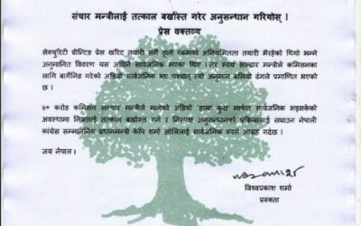 काठमाडौं, ८ फागुन । प्रमुख प्रतिपक्षी दल नेपाली कांग्रेसले सेक्युरिटी प्रेस खरिद प्रकरणमा मुछिएका सञ्चार