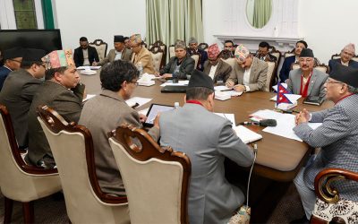 काठमाडौं, पुस १४ । प्रधानमन्त्री पुष्पकमल दाहाल ‘प्रचण्ड’सँग छ वटा प्रदेशका मुख्यमन्त्रीहरूले शनिबार बिहान बालुवाटारमा