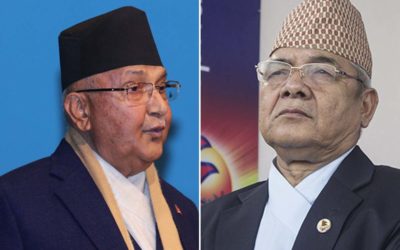 काठमाडौं, ११ असोज । नेपाल कम्युनिस्ट पार्टीका अध्यक्षद्वय केपी शर्मा ओली र पुष्पकमल दाहाल प्रचण्डबीच