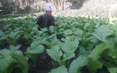 म्याग्दीको बेनी नगरपालिका २ खबराका चन्द्रवहादुर कार्की साग टिपेर बजार लाने तयार गर्दै । कार्कीले