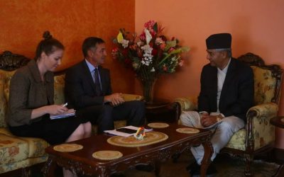 काठमाडौं, ९ असोज । प्रमुख प्रतिपक्षी दल नेपाली काङ्ग्रेसका सभापति एवं पूर्वप्रधानमन्त्री शेरबहादुर देउवासँग नेपालका