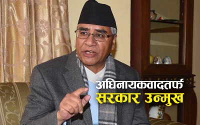 काठमाडौं, १ असोज । प्रमुख प्रतिपक्षी दल नेपाली कांग्रेसका सभापति तथा पूर्व प्रधानमन्त्री शेरबहादुर देउवाले