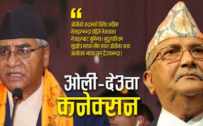 काठमाडौं, ३ असार । प्रधानमन्त्री केपी शर्मा ओली र नेपाली काँग्रेसका सभापति शेरबहादुर देउवाबीचको नेक्ससका