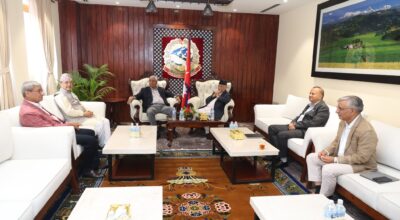 काठमाडौं, २४ असार । नेपाली कांग्रेसका सभापति शेरबहादुर देउवा प्रधानमन्त्री एवम् एमाले अध्यक्ष केपी शर्मा