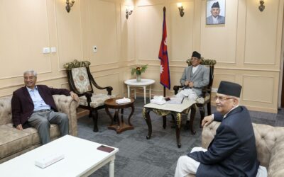 काठमाडौं, १४ साउन । प्रमुख तीन दलका शीर्ष नेताबीच बालुवाटारमा आज भेटवार्ता भएको छ ।