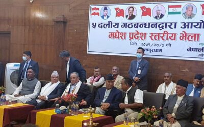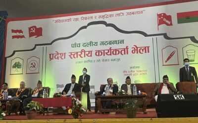 काठमाडौं, ५ कार्तिक । प्रधानमन्त्री तथा नेपाली कांग्रेसका सभापति शेरबहादुर देउवासहित पाँचदलीय गठबन्धनका शीर्षनेताहरु आज