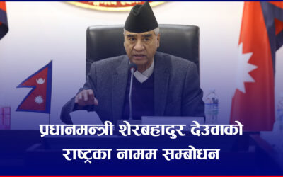 काठमाडौं, ७ माघ । प्रधानमन्त्री शेरबहादुर देउवाले राष्ट्रका नाममा सम्बोधन गर्दैछन् । उनले केहीबेरमा गर्ने