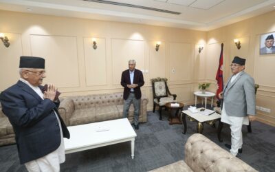 काठमाडौं, २४ असार । संसद्को गतिरोध अन्त्यका लागि तीन दलका शीर्ष नेताहरुबीच छलफल भएको छ