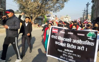 काठमाडौं, २५ पौष । प्रधानमन्त्री केपी शर्मा ओलीको प्रतिनिधिसभा बिघटन गराउने कदमविरुद्ध प्रमुख राजनीतिक दल