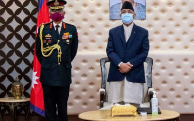 काठमाडौँ, २१ कात्तिक: प्रधानमन्त्री केपी शर्मा ओलीसँग नेपाल भ्रमणमा रहेका भारतीय स्थलसेनाध्यक्ष मनोजमुकुन्द नरवणेले आज