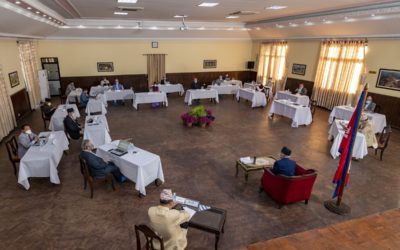 काठमाडौ, १६ चैत्र । मन्त्रिपरिषदको बैठकमा सामाजिक दूरी कायम गरिएको छ । प्रधानमन्त्री केपी शर्मा