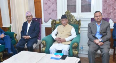 काठमाडौं, २४ असोज । नेकपा (एमाले) का अध्यक्ष केपी शर्मा ओली, नेपाली कांग्रेसका नेता एवं