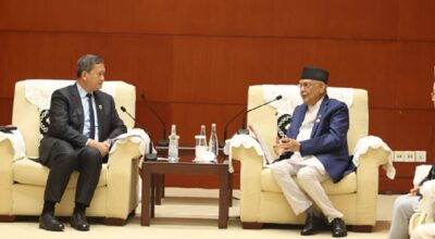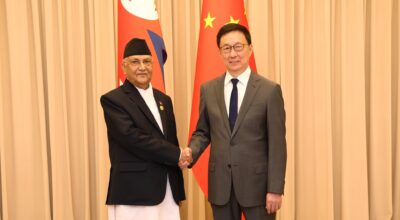 काठमाडौं, १७ भदौ । चीनको औपचारिक भ्रमणमा रहेका प्रधानमन्त्री केपी शर्मा ओली र चिनियाँ उपराष्ट्रपति