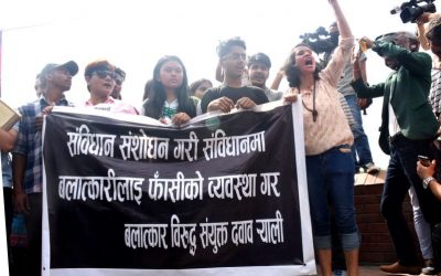 काठमाडौं, २ भदौ । राजधानीको माइतीघर मण्डलामा अभियन्ताहरूले अर्धनग्न प्रदर्शन गरेका छन्। शनिबार महिला अधिकारका