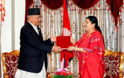 काठमाडौँ, ११ साउन / राष्ट्रपति विद्यादेवी भण्डारीसमक्ष प्रधानमन्त्री केपी शर्मा ओलीले नेपाल सरकारको आर्थिक वर्ष